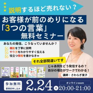お客様の心にスッと届く「3つの言葉」を手に入れて、「説明するほど売れない?!」から卒業しましょう。